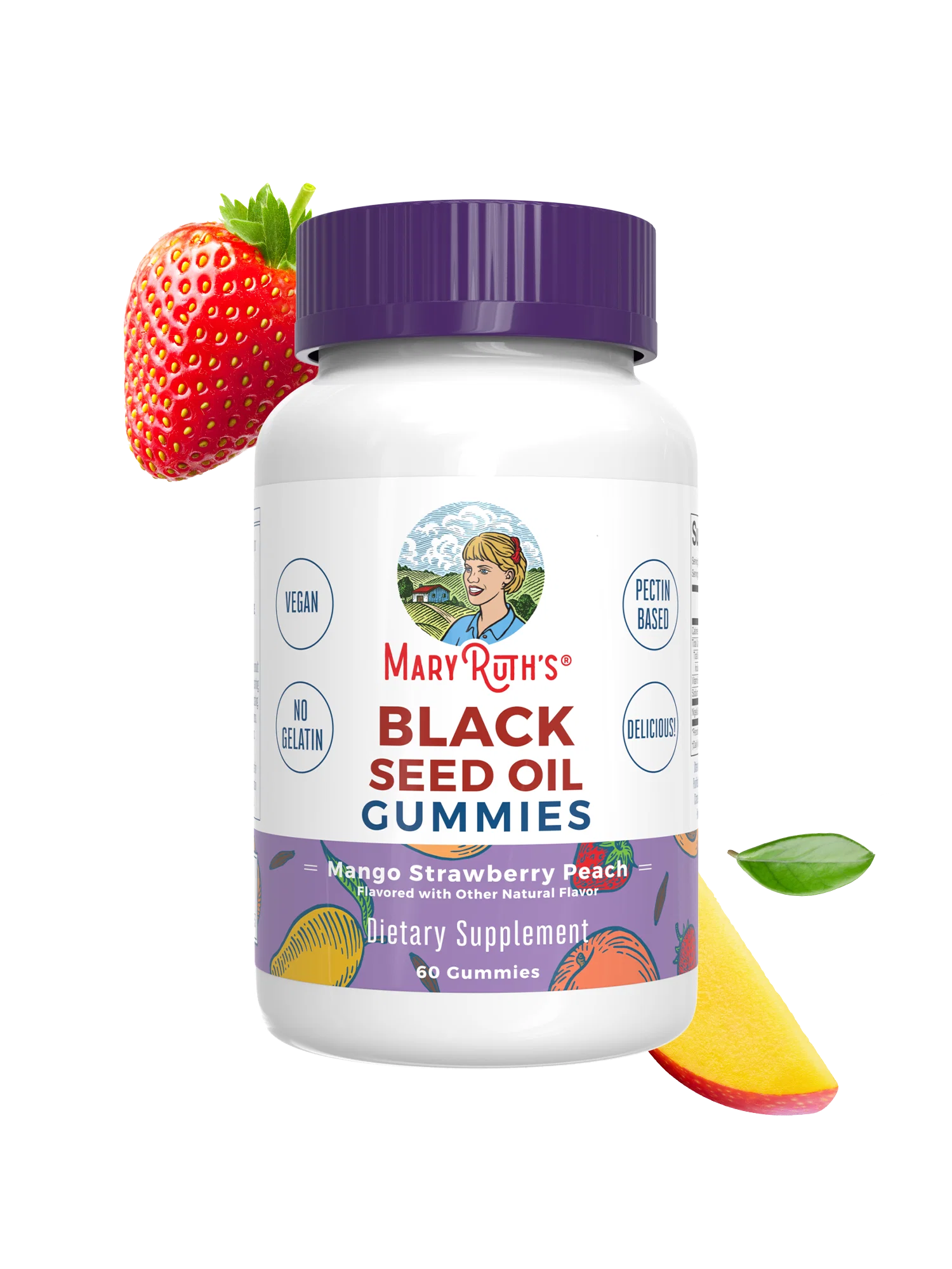 Enjoy the benefits of black seed oil, now in delicious gummies! Try this traditionally used herbal to support immune function and more with three mango-strawberry-peach-flavored gummies per day.
