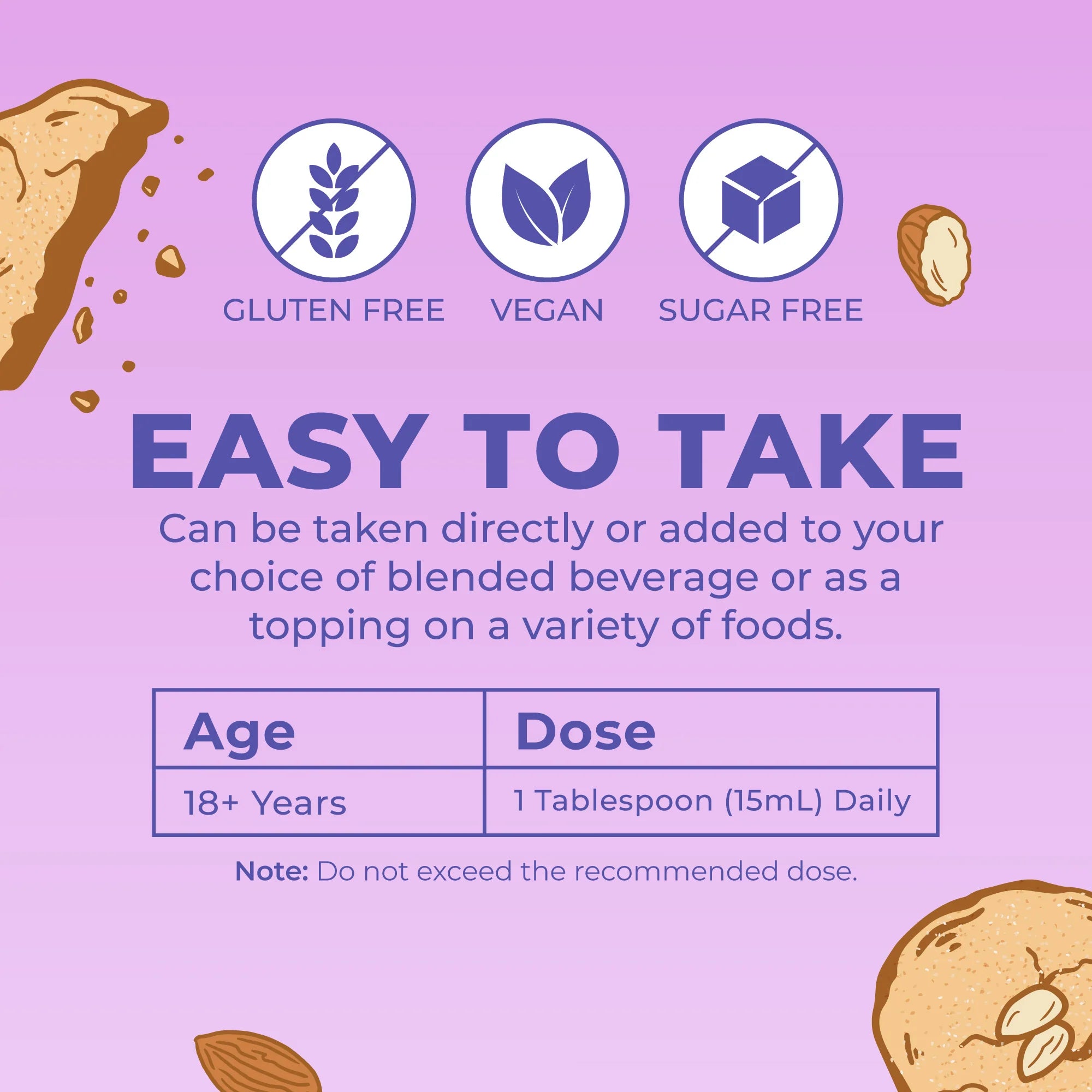 Ages 18+ take 1 tablespoon (15 mL) daily. Can be taken directly or added to your choice of blended beverage or as a topping on a variety of foods. Do not exceed the recommended dose.
