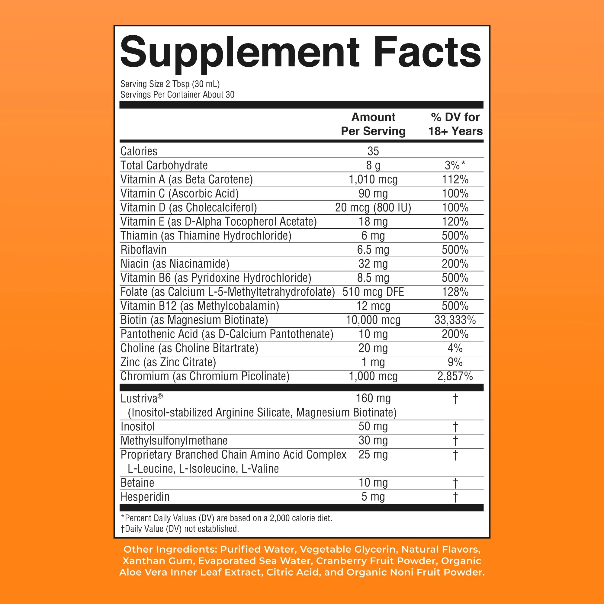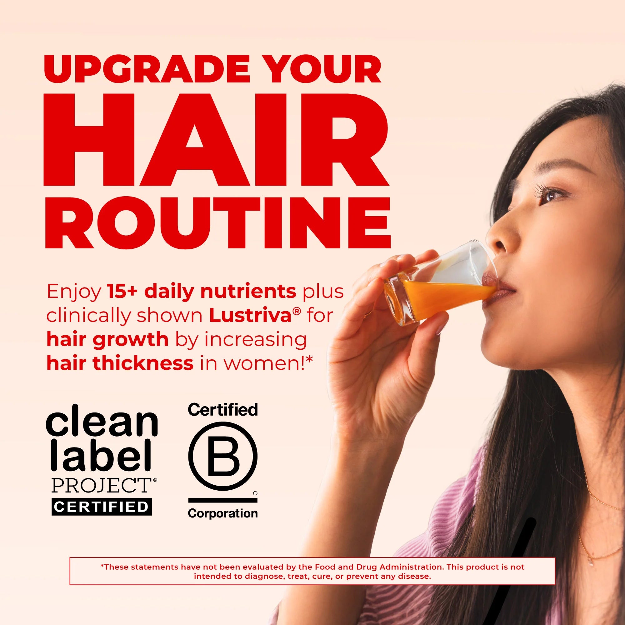 Our best-selling multivitamin to support your beauty from within! With clinically shown Lustriva®, this delicious liquid multivitamin helps support thicker, fuller hair and smoother skin in women — while also delivering daily wellness support with essential nutrients to support energy metabolism, immunity, and more.