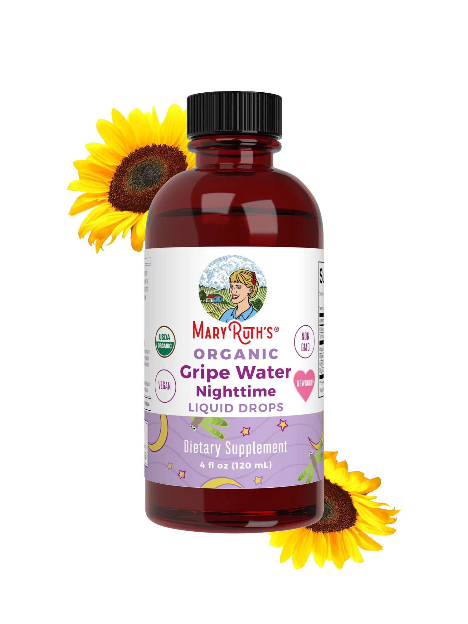 Gentle Herbs for Little Tummies! With a gentle, mild taste, our Organic Gripe Water Nighttime Liquid Drops are easy to give to newborns.
