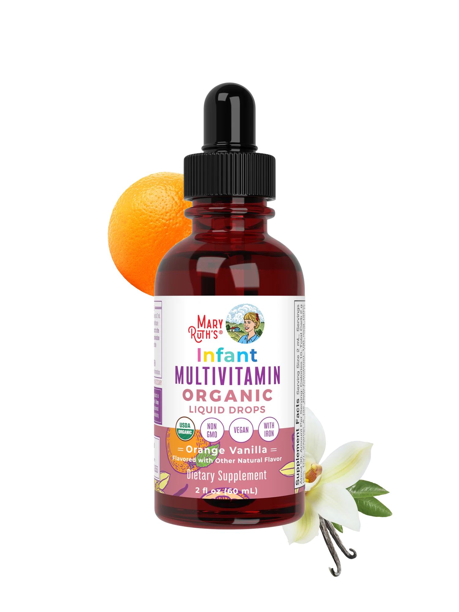 Our first liquid multivitamin with iron formulated just for infants! Support healthy growth, immune function, and more with these easy-to-administer liquid drops. Packed with some essential nutrients for your baby such as vitamins A, C, B6, B12, D3, E, iron, zinc, and choline, all in a delicious orange-vanilla flavor.
