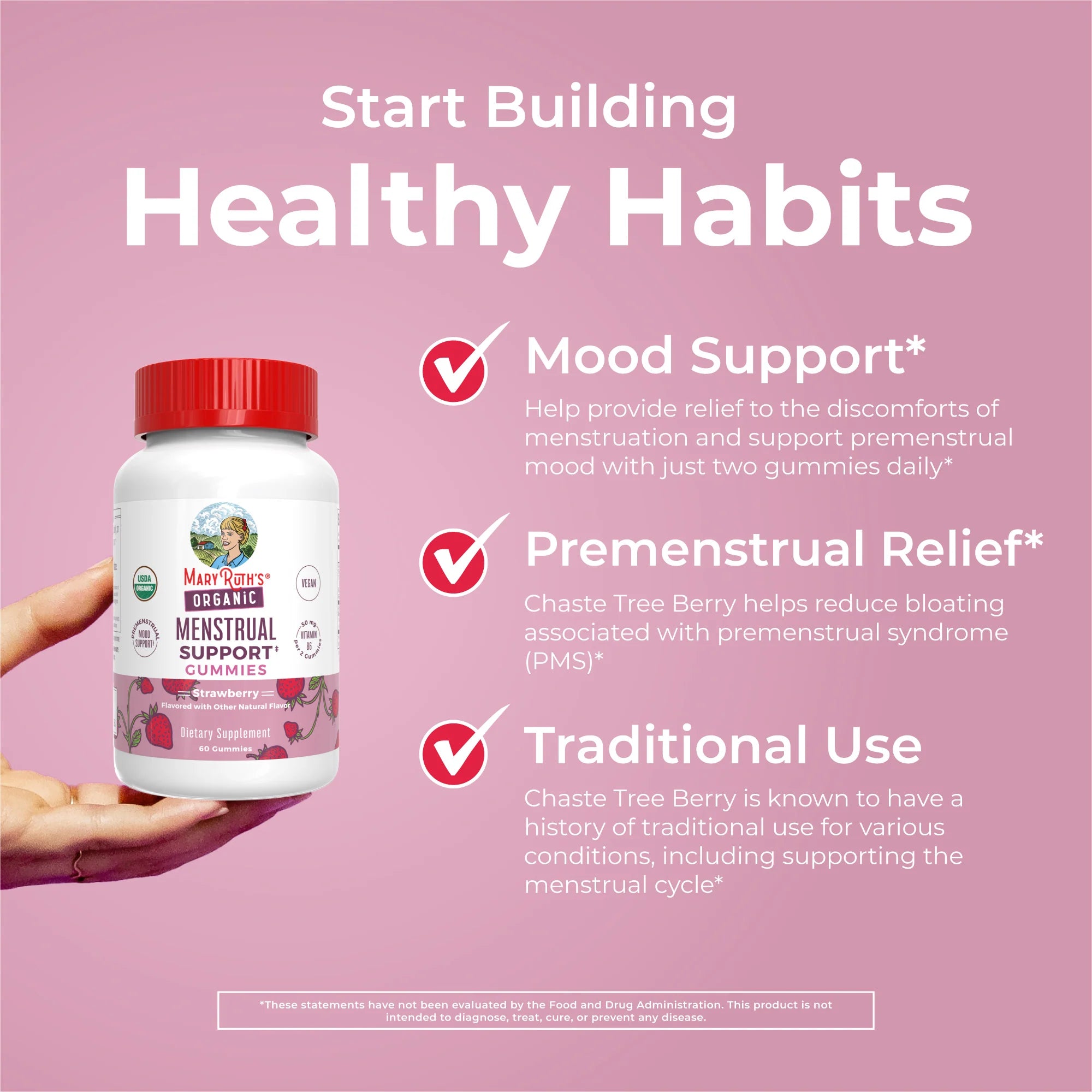 Your Routine, Your Way: Women ages 18 and older can add these USDA organic gummies to their routine to support the menstrual cycle and overall health and wellness!