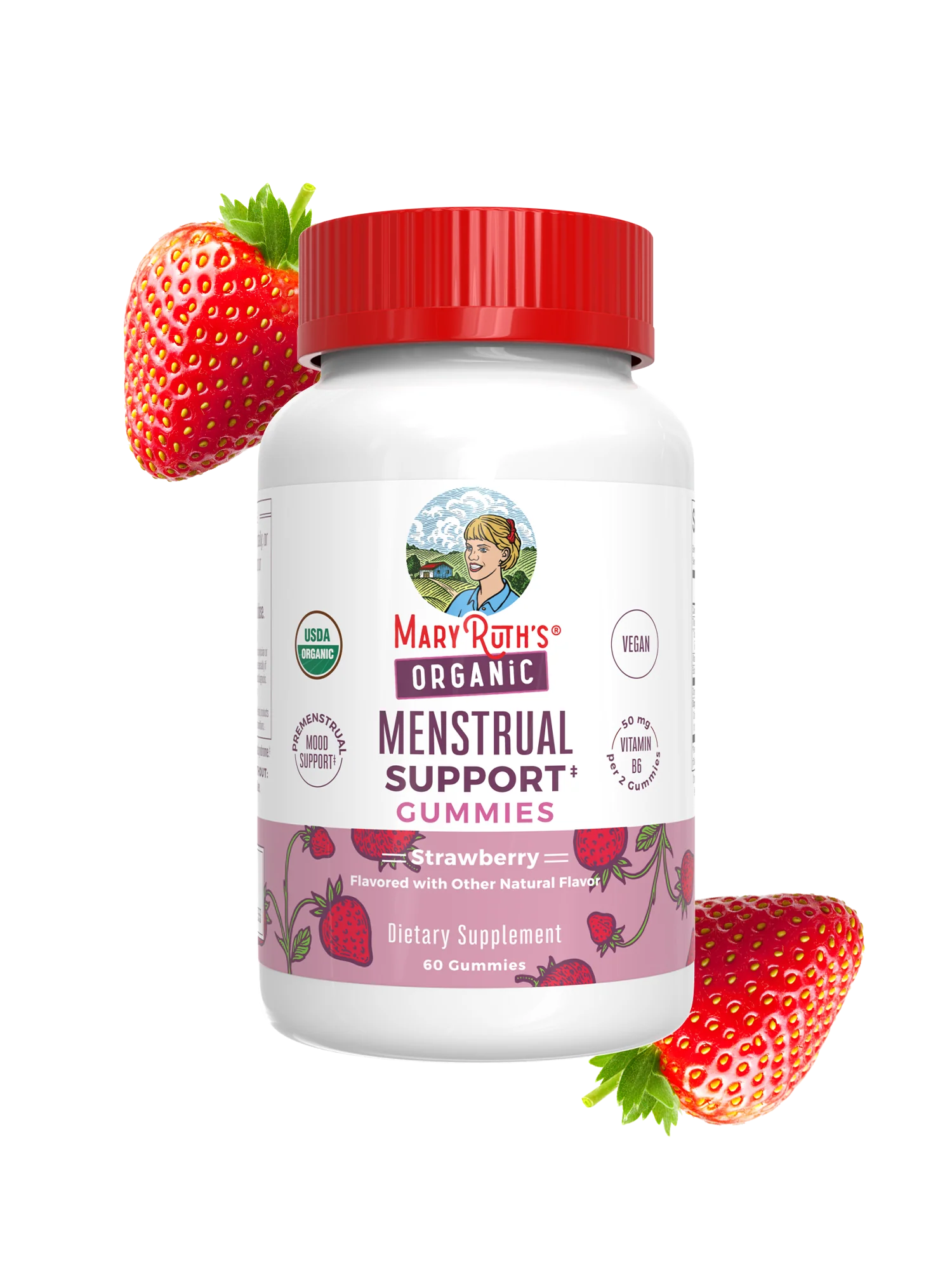 Premenstrual Mood Support: To help provide relief to the discomforts of menstruation and support premenstrual mood, take just two of these delicious strawberry-flavored gummies daily.