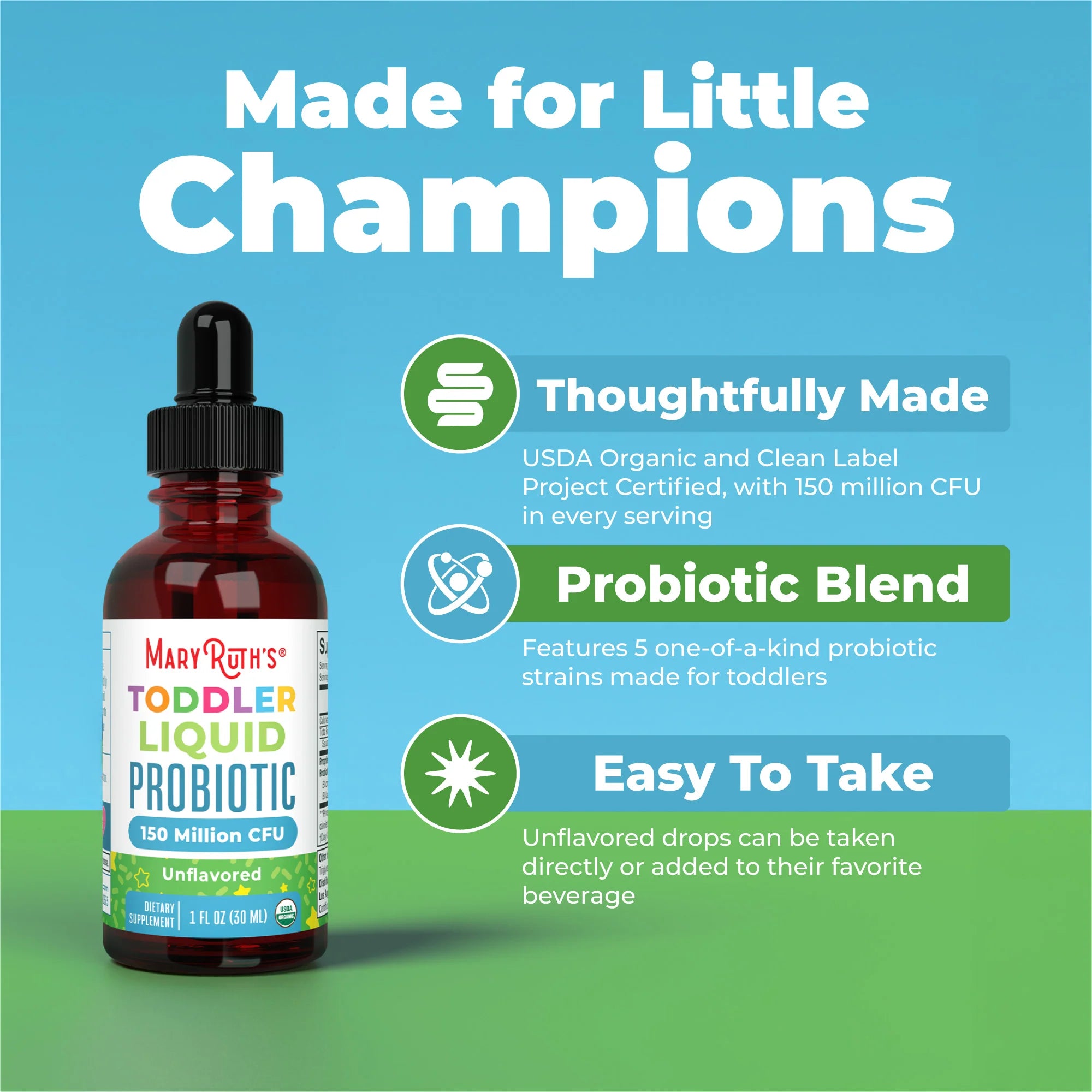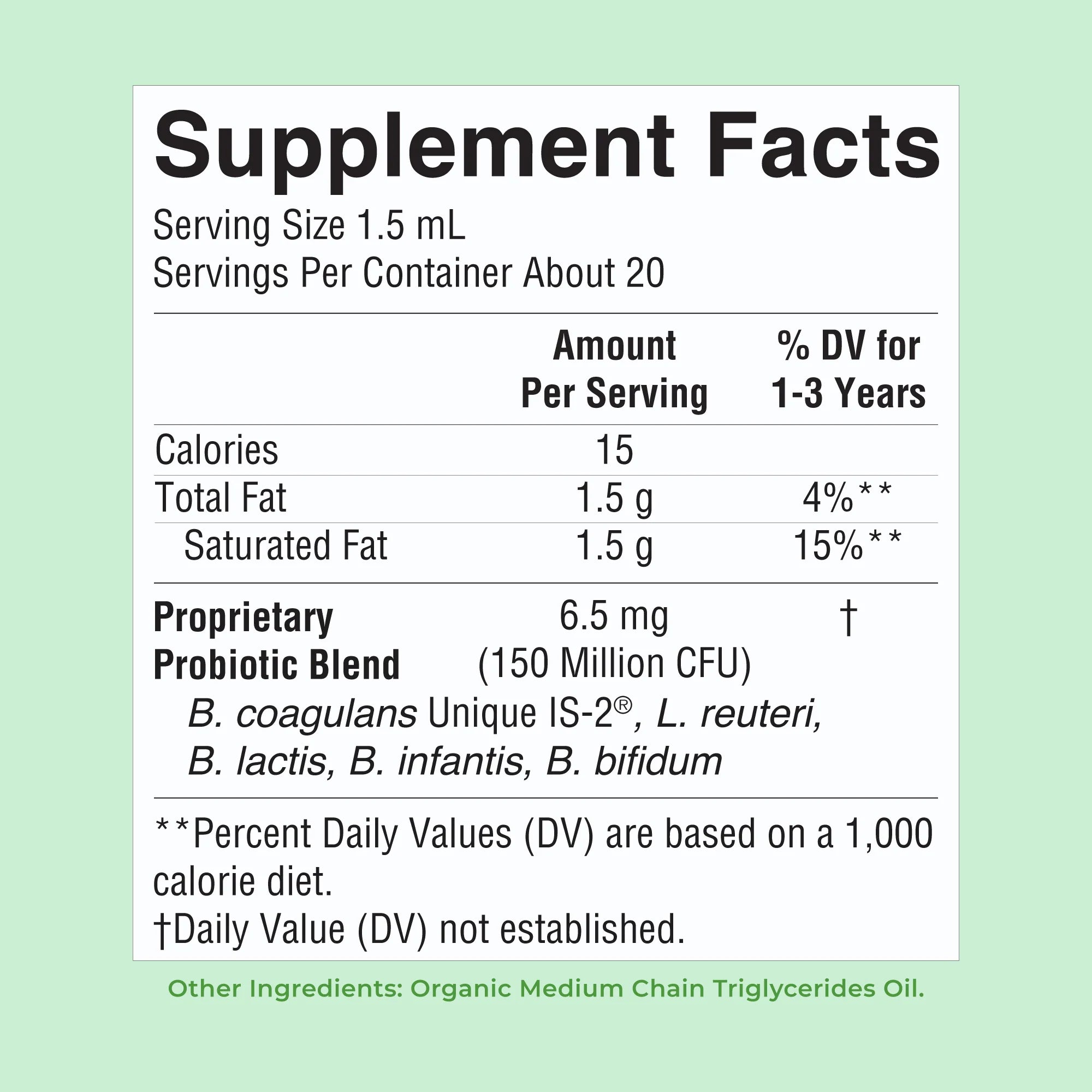 Five Unique Probiotic Strains: Our liquid probiotic for toddlers is composed of 5 one-of-a-kind probiotic strains: Bacillus coagulans Unique IS-2®, Bifidobacterium lactis, Bifidobacterium infantis, Bifidobacterium bifidum, and Lactobacillus reuteri.
