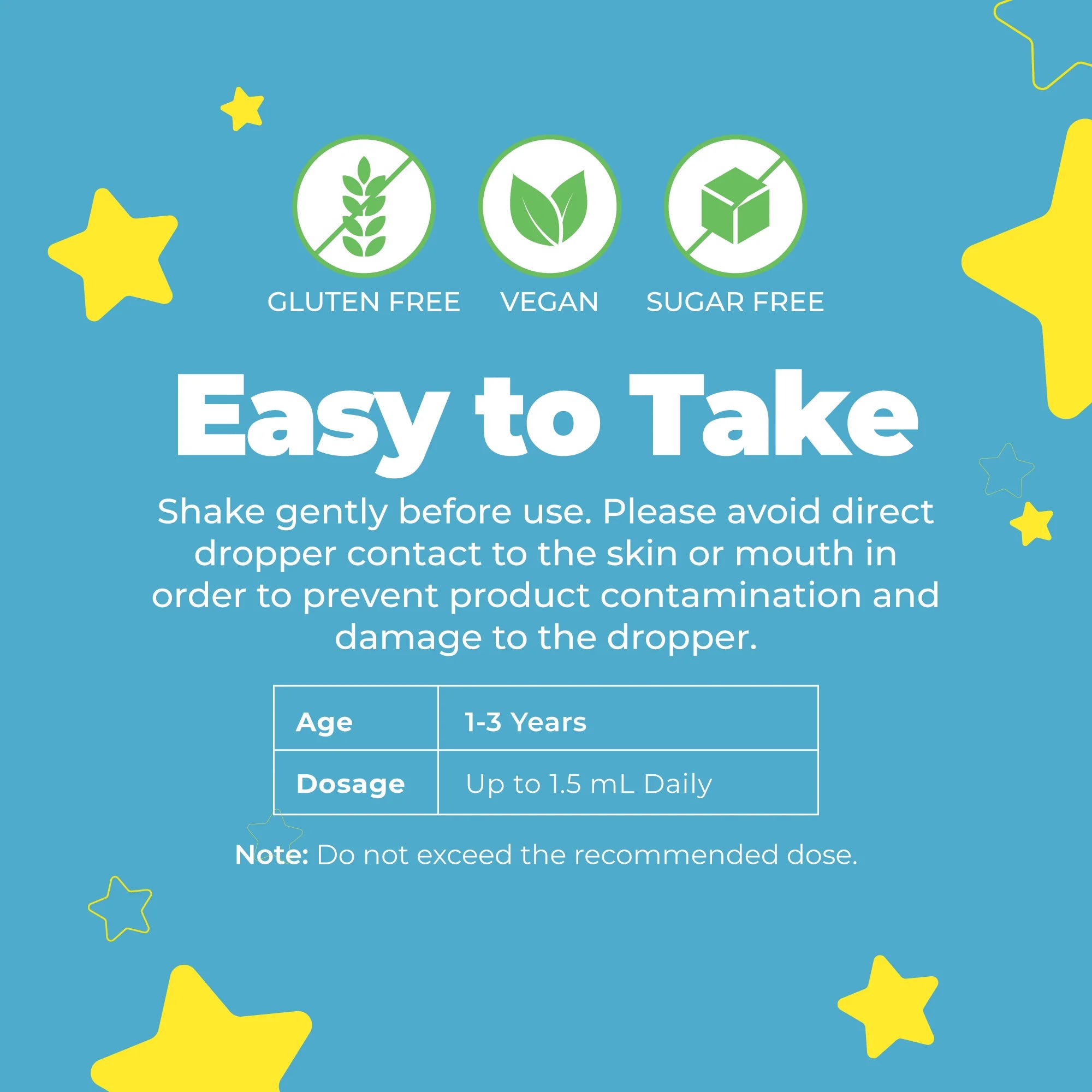 Easy to Administer: Formulated for ages 1-3, you can easily give this to your toddler directly, or add the unflavored liquid directly into your child’s favorite room-temperature beverage.