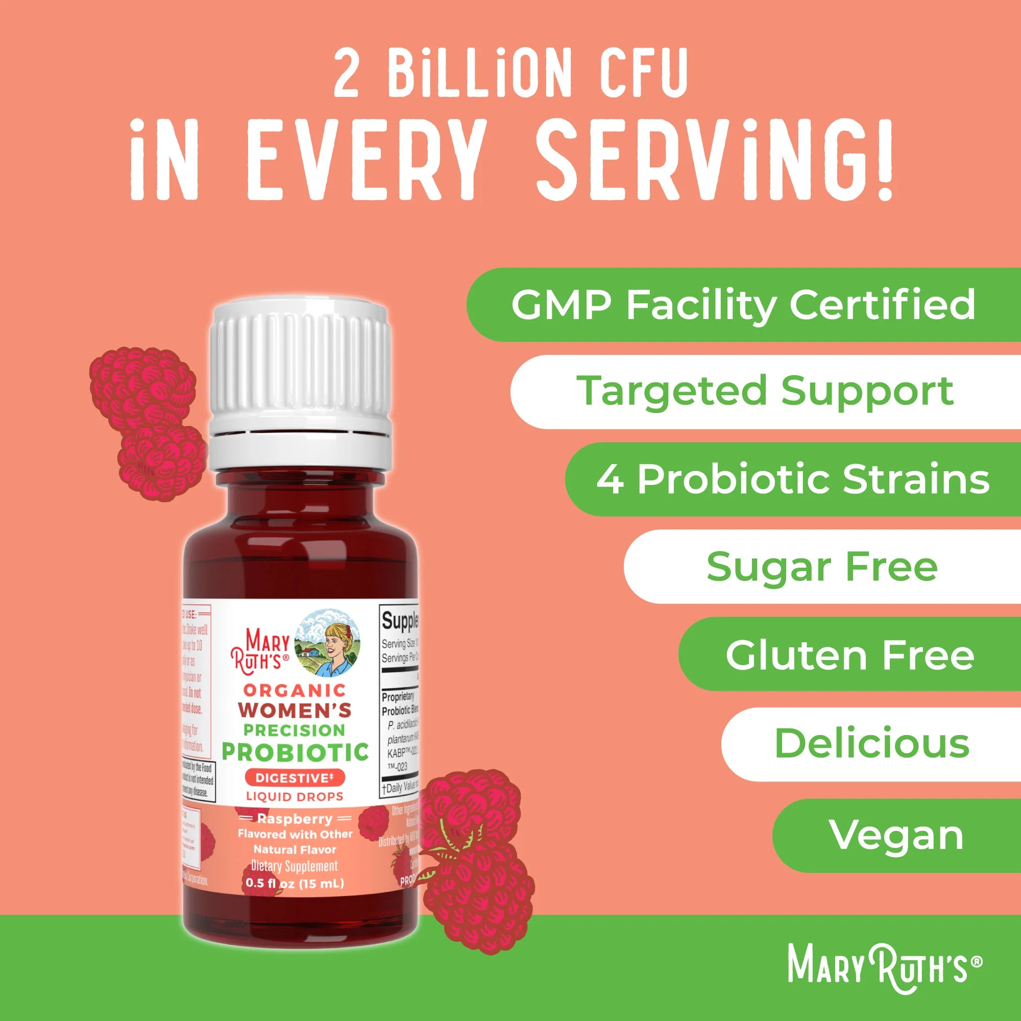 For women looking to maintain digestive health and support wellness, these easy-to-take & delicious raspberry-flavored drops are a great incorporation into your daily routine!