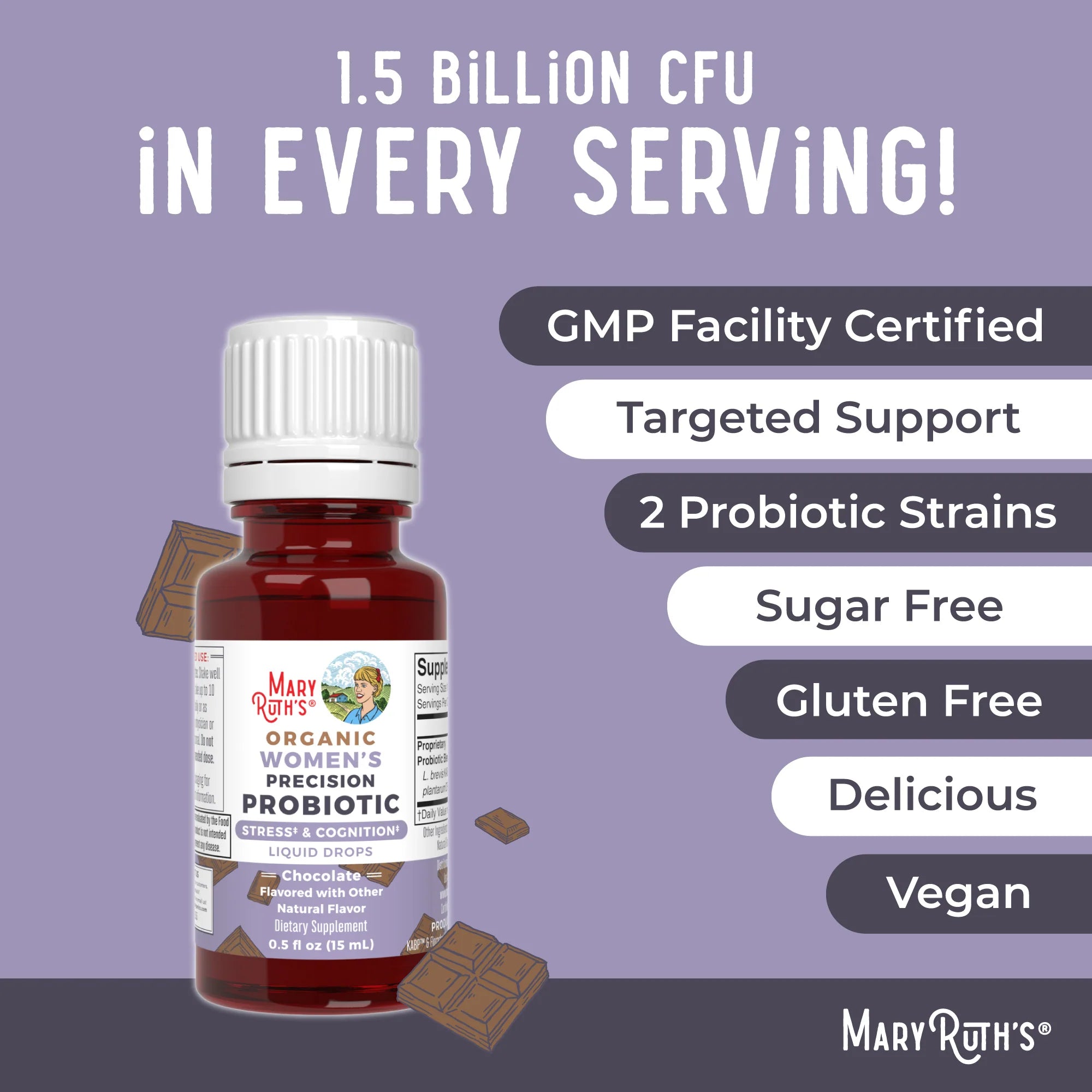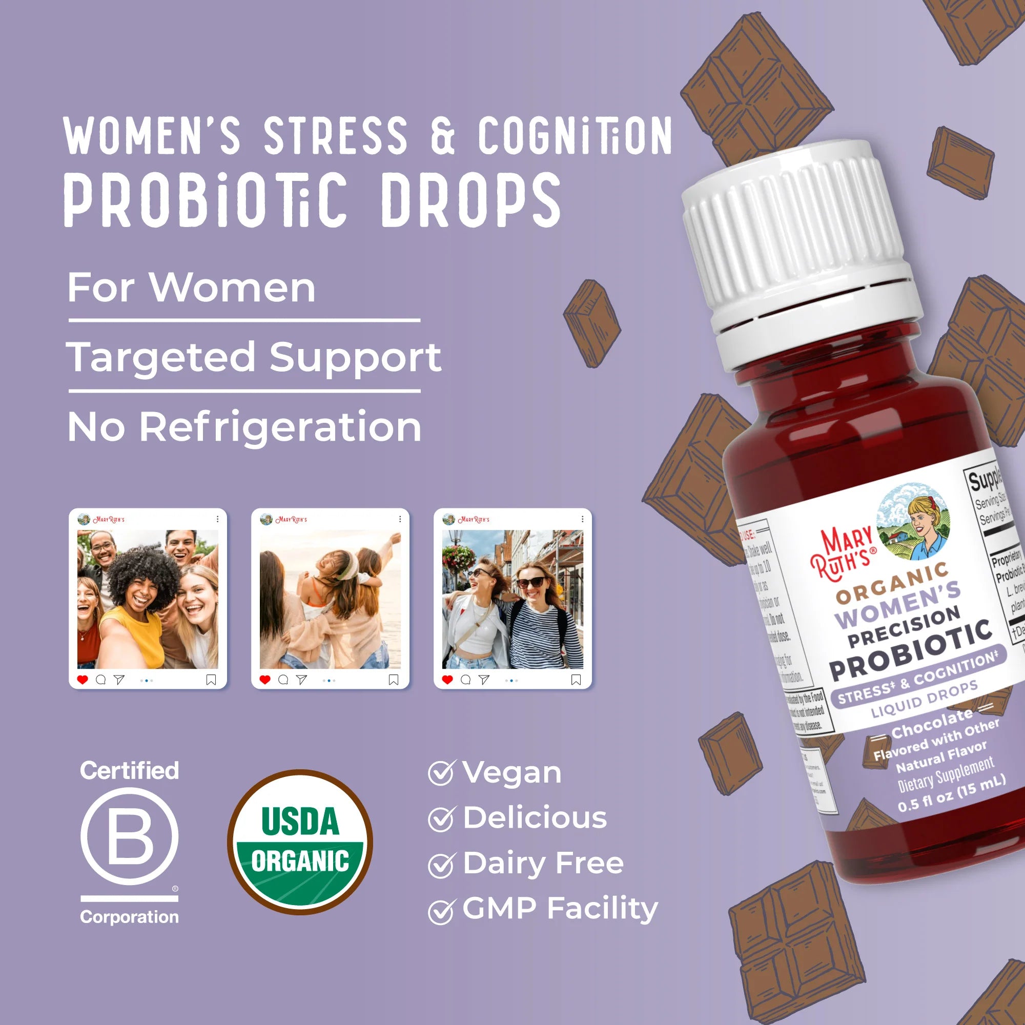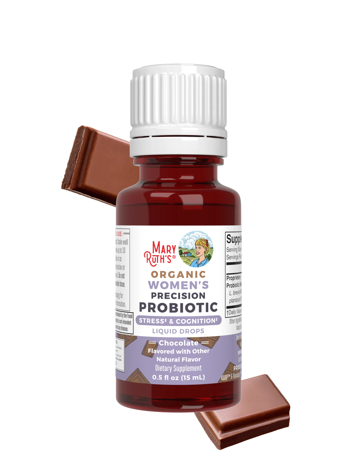 Formulated with a proprietary probiotic blend of Lactobacillus brevis and Lactobacillus plantarum, these probiotic drops are targeted to support women’s stress levels to find focus and maintain healthy cognitive function.
