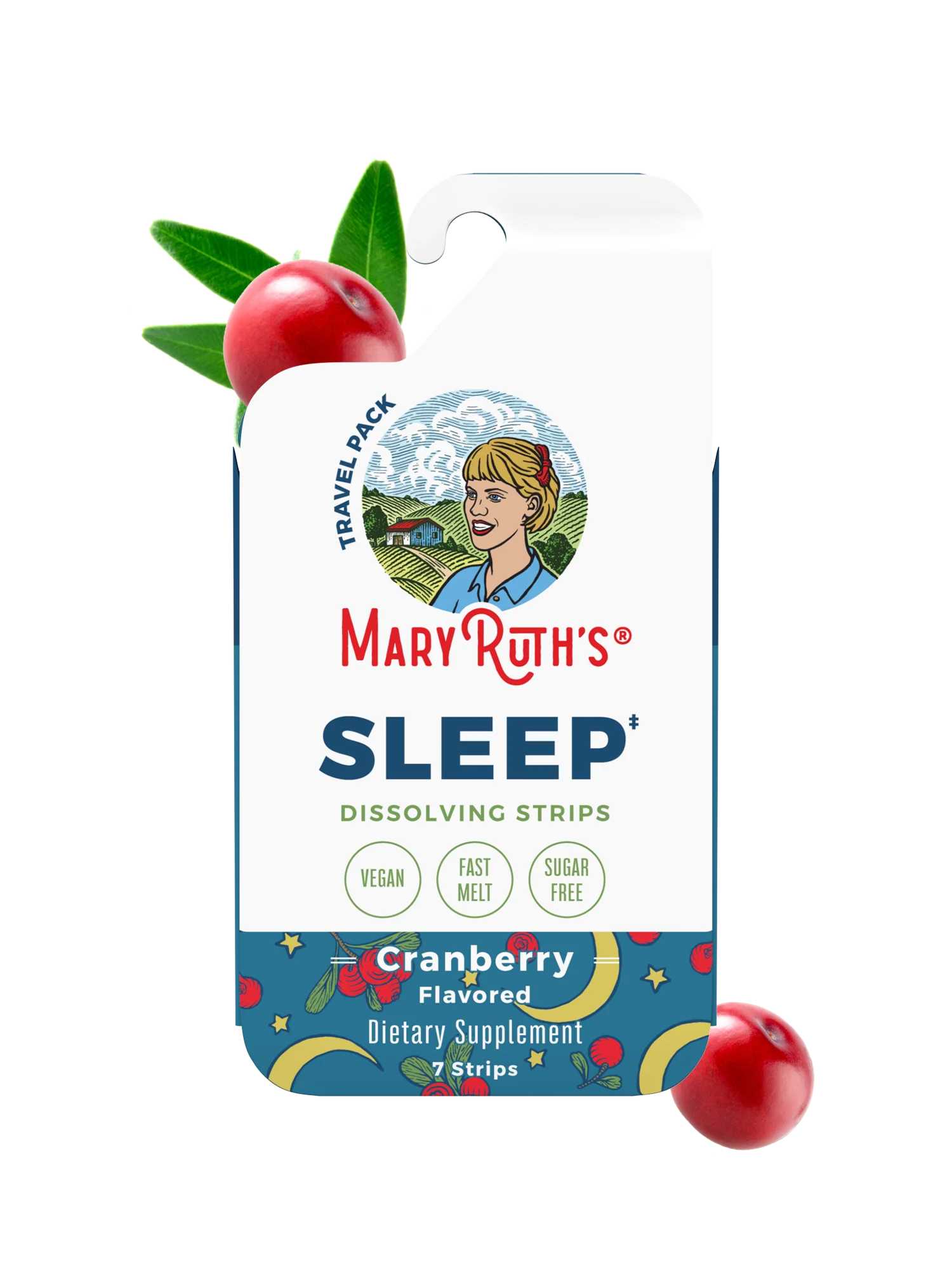 Simply peel a strip, place on your tongue, & let it dissolve! You’ll get a tin with 30 cranberry-flavored dissolving strips included to take at home or on-the-go to help with occasional sleeplessness.