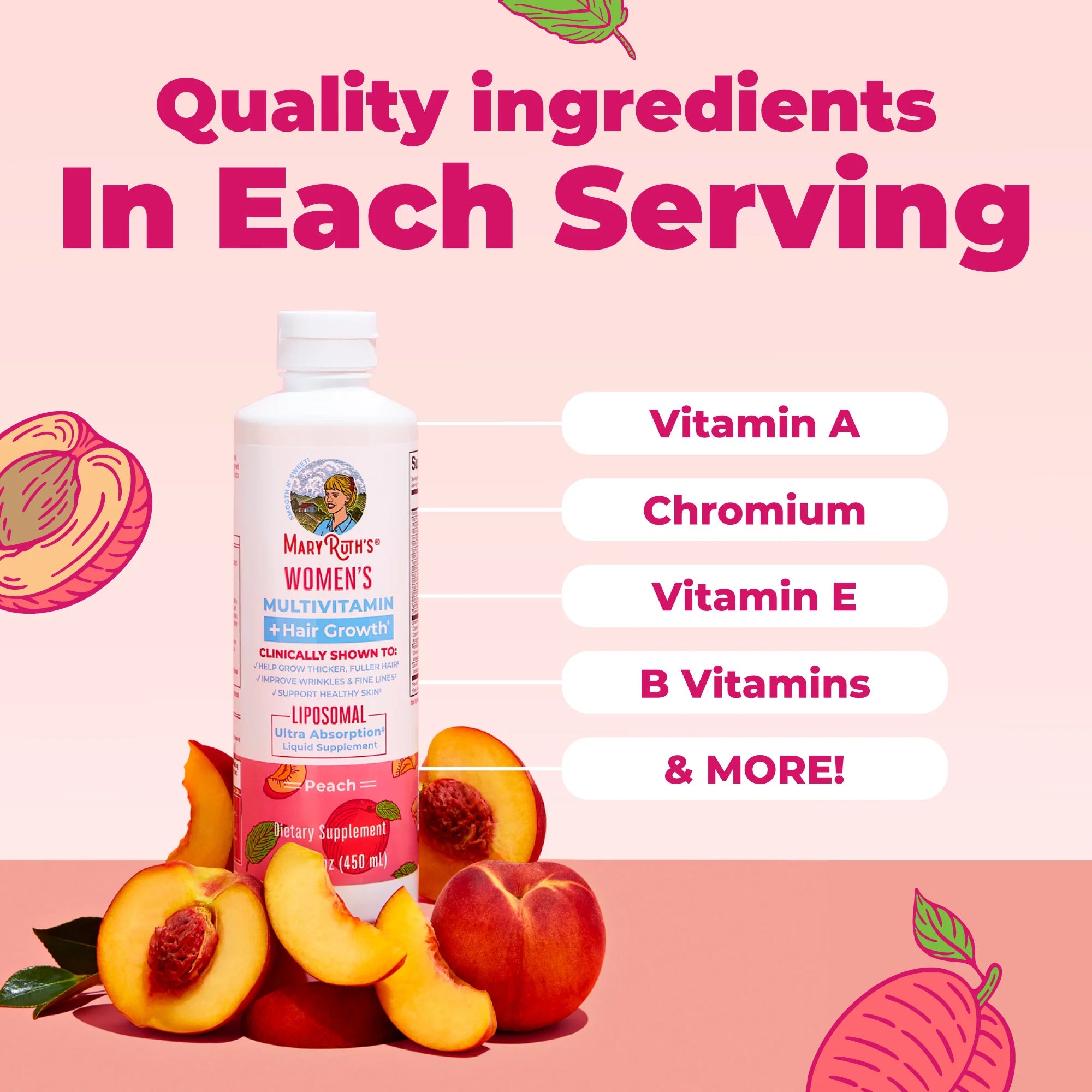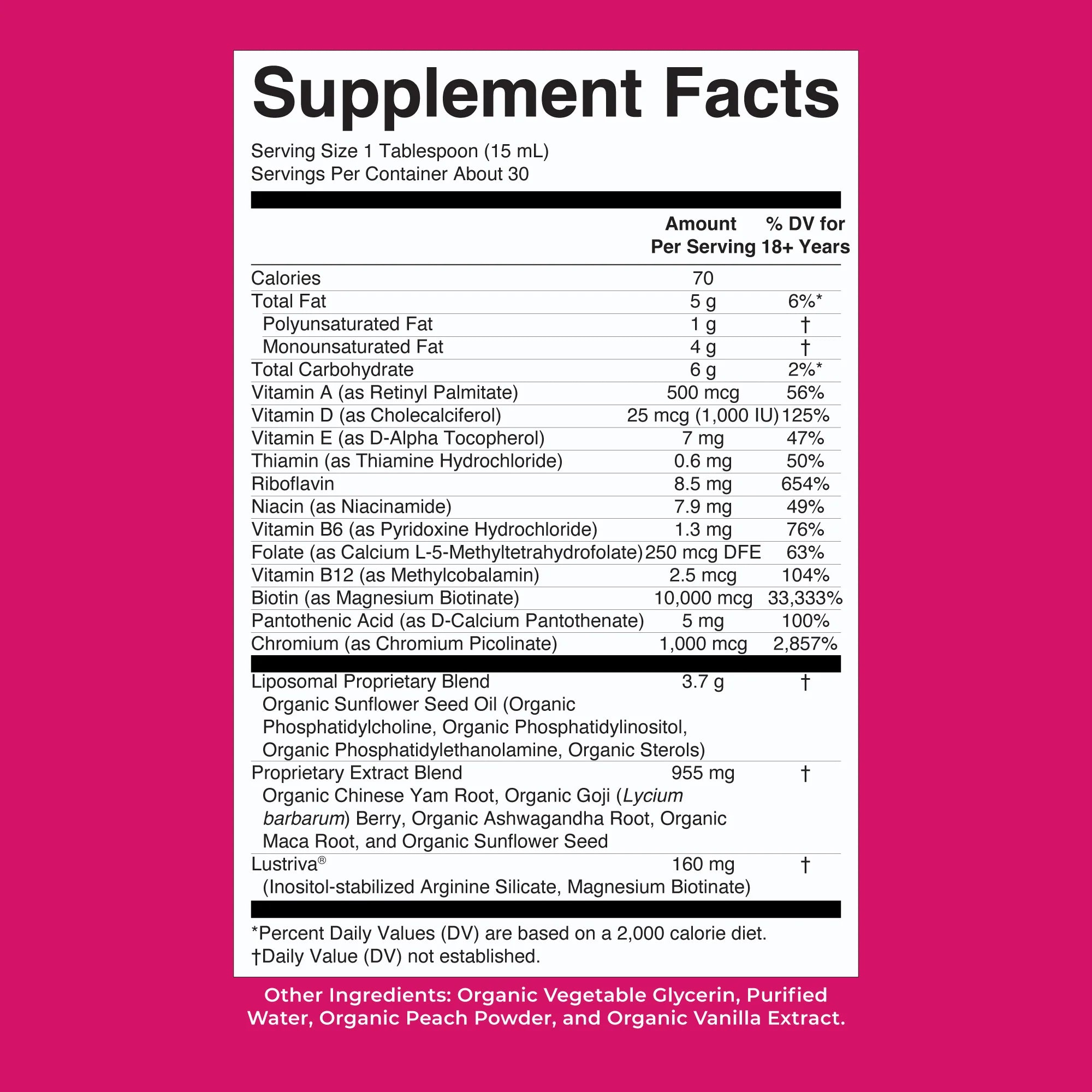 Formulated for women, this sweet and smooth liposomal multivitamin delivers ultra absorption and 11+ essential nutrients. With clinically shown Lustriva®, it helps grow thicker, fuller existing hair in as early as 3 weeks and improve facial fine lines, wrinkles, and smoothness.