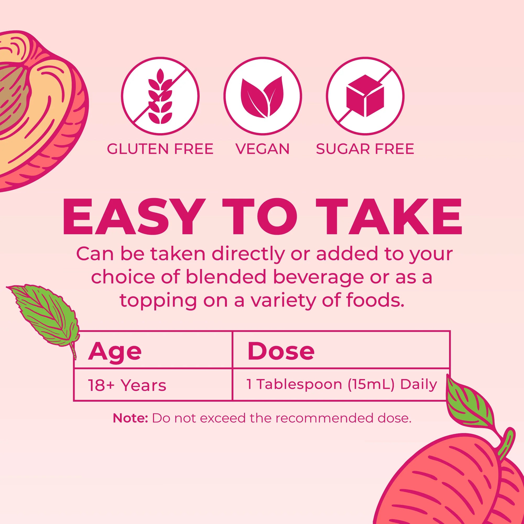 Suggested Use: Shake well before use. Adults 18+ take up to 1 tbsp (15 mL) daily or as recommended by a physician or healthcare professional. Take in the morning either with food, juice or on an empty stomach. Do not exceed the recommended dose.