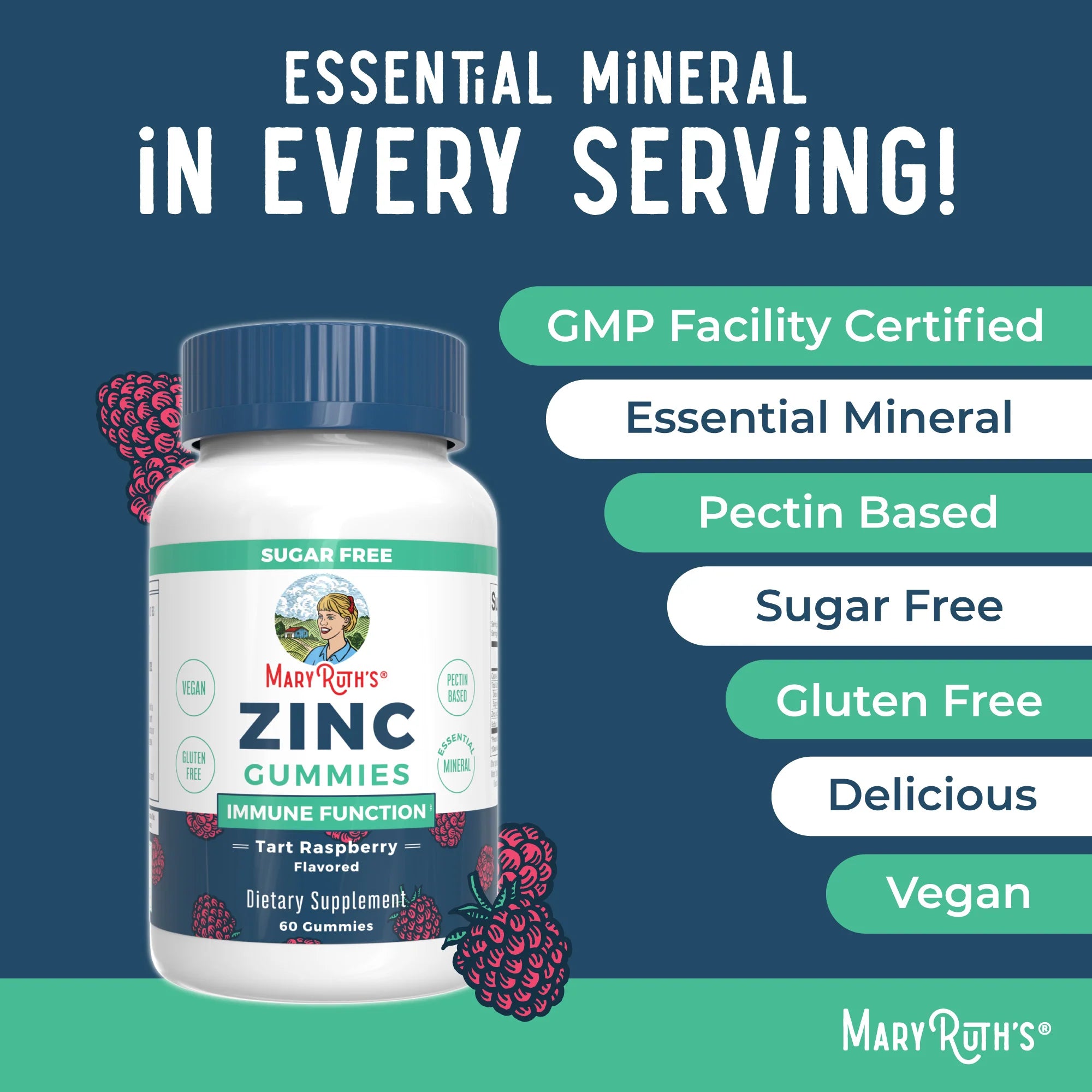 Receive 100% of the recommended daily intake of zinc for ages 14+ with just 2 delicious tart raspberry-flavored gummies!